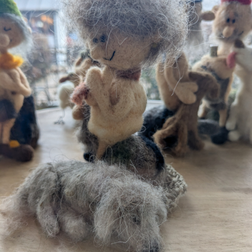 På Gilleleje Bibliotek kan du i øjeblikket opleve en hyggelig udstilling med filtede figurer skabt af kunstner Vilde Börninck (VildeArt).